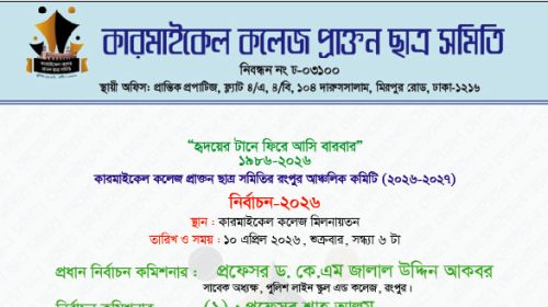 কারমাইকেল কলেজ প্রাক্তন ছাত্র সমিতির রংপুর আঞ্চলিক কমিটির নির্বাচনে সবাইকে আমন্ত্রণ।